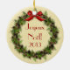 Schöne rote Nusscracker Puppe in Kranz um Joyeux Noël, Französisch Weihnachtsschmuck. Dieses wunderschöne zweiseitige Keramik-Ornament besticht durch einen roten Nussknacker im Zentrum eines Urlaubskreises mit Kiefern und Beeren! Der Rücken hat auch einen schönen Kranz und beugt sich mit den Worten "Joyeux Noël" - Frohe Weihnachten in französischer Sprache und das Jahr! Eine wunderbare Ergänzung zu Ihrer Schmuckkollektion, Urlaubsstimmung und ein tolles Geschenk für Familie, Freunde und jemanden, der den Nusscracker Liebe!