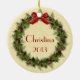 Schöne rote Nusscracker Puppe in Kranz um Frohe Weihnachten personalisierten Ornament. An der Vorderseite dieses hübschen zweiseitigen Keramik-Ornaments befindet sich ein roter Nussknacker inmitten eines Kranzes mit Kiefern, Beeren und einem rot-goldenen Bogen. Die Rückseite hat auch einen schönen Kranz und Bogen und ist bereit für Sie, einen Namen und Jahr in der Mitte hinzuzufügen! Um die Größe, den Stil oder die Farbe des Schriftartes zu bearbeiten, klicken Sie einfach auf "Anpassen" am unteren Rand des Bildes auf dieser Seite und diese Optionen werden Ihnen ebenfalls zur Verfügung gestellt! Eine wunderbare Ergänzung zu Ihrer Schmuckkollektion, Urlaubsstimmung und ein tolles Geschenk für Familie, Freunde und jemanden, der den Nusscracker Liebe!