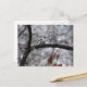 Ein winziger Nacktfisch sitzt auf einem Baumstamm, während riesige Schneeflocken fallen.