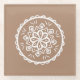 Dieses weiße Mandala sitzt auf einem hellbraunen Hintergrund. Die Farben sind neutral und passen zu allem. Teil der Sammlung Bleujenn Mandala.