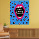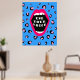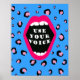Nimm deine Stimme! Sprich auf, selbst wenn deine Stimme zittert. Der blau-rosa Leopardenhintergrund zeigt einen lebhaften rosa Schrei im Mund.