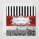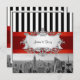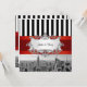 NY City Skyline Customizable Invitation Suite B2 - Faire-part de mariage Customizable Invitations et accessoires avec une vue iconique de la ligne d'horizon de New York City du sommet du 30 Rockefeller Center, avec une photo en noir et blanc de l'Emp St Building, Lower Manhattan y compris le World Trade Center. Il dispose également d'un motif à rayures noir et blanc, et vous avez le choix de 3 rubans colorés - rouge, turquoise et noir. Il dispose également d'un étiquette à dégradé blanc dans un cadre argenté. Ce produit fait partie d'une suite de conceptions assorties qui sont facilement personnalisables pour de nombreuses occasions et événements. Si vous avez besoin de cartes RSVP assorties, notes de remerciements, timbres, magnets ou autres accessoires, veuillez consulter nos autres annonces. 2012 ©NYCisMyMuse Tous droits réservés