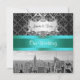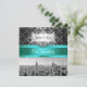 NY City Skyline Customizable Invitation Suite B2 - Wedding Invitation =========== Individuelle Einladungen und Accessoires mit einem fantastischen Blick auf die Skyline von New York City von der Spitze des 30 Rockefeller Center, mit einem Schwarz-Weiß-Foto des ESB, Lower Manhattan einschließlich des WTC. Es zeichnet sich durch ein schwarzes Damast-Muster gegen einen Farbverlauf silbergrauen Hintergrund und ein türkisfarbenes Band aus. Es verfügt auch über ein weißes Farbenlabel in einem silbernen Look Rahmen. Dieses Produkt ist Teil einer Reihe von passenden Designs, die für viele Anlässe und Veranstaltungen leicht anpassbar sind. Wenn Sie separate, passende RSVP-Karten benötigen, Dankeschön, Briefmarke, Magnete, Gefälligeis-Tags, Begleitkarten, Platzkarten, Weinetiketten, Menüs, Eventprogramme oder anderes Zubehör, dann Karo unsere anderen Listen.