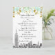 NYC Skyline ESB Etch Mint Gold Floral Wedding Einladung