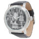 Uhr, Vintage Männeruhr mit schwarzem Lederarmband