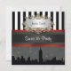 NY City Skyline Silhouette, Dark Starry Sky, Black & White Stripe Invitation Collection - 16 . Geburtstag Party Einladung Individualisierbare Einladungen und Accessoires mit einem ikonischen Blick auf die Silhouette New York City mit dem Emp St Gebäude das Chrysler Gebäude gegen einen dunklen Sternenhimmel. Sie sind mit einem schwarz-weiß gestreiften Muster, einem roten und schwarzen Band und einem weißen Farbverlauf versehen, wobei Sie zwischen einem silbernen oder goldenen Rahmen wählen können. Dieses Produkt ist Teil einer Reihe von passenden Designs, die für viele Anlässe und Veranstaltungen leicht anpassbar sind. Wenn Sie separate, passende RSVP-Karten, Dankeschön-Hinweise, Briefmarke, Magnete oder andere Accessoires benötigen, Karo bitte unsere anderen Einträge aus. 2012 ©NYCisMyMuse Alle Rechte vorbehalten