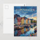 Nyhavn ist ein Hafenviertel aus dem 17. Jahrhundert in Kopenhagen, bekannt für seine bunt gestrichenen Wohnhäuser und historischen Holzschiffe. Nachts werden die lebendigen Farben der Gebäude durch das warme Licht der Restaurantfenster, das sich im Kanal spiegelt, gemildert.