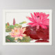 Verwandeln Sie Ihren Raum mit diesem ruhigen Gemälde, das zwei zarte rosa Lotusen zeigt, die anmutig auf einem ruhigen Teich schwimmen. Dieses atemberaubende Stück dient als vollkommener Akzent der Wohngestaltung und bringt jedem Zimmer ein Gefühl von Ruhe und Eleganz.