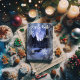 "O Heilige Nacht" in Silberfolie über einen sternhaften Winternachthimmel, über einem Wald von schneebedeckten Bäumen, mit Silberfolie Schneeflocken Akzenten. Verse drinnen und zurück vom Evangelium Lukas: "Denn für dich ist dieser Tag in der Stadt David a Erretter, die Christus der Herr ist, geboren."