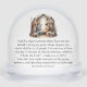 A tender depiction of the nativity unfolds beneath a glowing star, where Mary and Joseph kneel in awe beside the newborn Savior. Shepherds gather reverently, their expressions lit by quiet wonder, while gentle sheep rest nearby in the stillness of the manger. This sacred scene invites reflection on the miracle of Christ’s birth and the timeless hope it brings to all. On the reverse side, a smaller version of the image accompanies a beloved scripture from Luke 2:10–11, completing the message with spiritual grace.