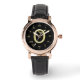 Diese modische Uhr besticht durch ein schwarzes Gesicht mit schwarzen Händen, goldfarbene römische Ziffern und einen goldfarbenen Buchstaben O. Ideal für eine Person mit dem ersten O.