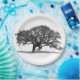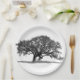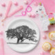 Ein Schwarz-Weiß-Foto eines schönen, sich ausbreitenden Eichenbaumes.