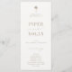 OASIS Beach, Hochzeitsprogramm. Merkmale, Taupe und sandige beige Typografie mit Details zur Palmenzeichnung.