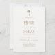 OASIS | Taupe Modern Minimalist Wedding Invitation. Features, modern minimalist typography design layout with palm tree illustration detail. Taupe color typography on light sand color background.