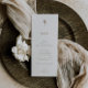 OASIS Moderne Minimalistische, sandige Taupe, Hochzeitsmenü. Features, taupe Typografie auf sandigem beigen Hintergrund und Details zur Palmendarstellung. Schriftart und Farben können mithilfe des Designtools angepasst werden.