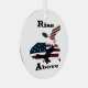 Der ikonische Glatzadler steigt hoch über der Landkarte der berühmten US Flagge, Amerika. Eine wunderbare inspirierende Botschaft in dieser Zeit.