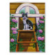 Diese schwarze Tuxedo Katze hat die Spitze der Leiter erreicht.