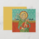 In diesem Detail eines belgischen Ausdrucks aus dem 19. Jahrhundert steht ein reifer, grauhaariger St. Joseph vor einer roten Wand, die mit einem goldgelben Schnitt hängt. Der Wandteppich ist gemustert mit gleichbewaffneten Kreuzen, die in rotierten Quadraten eingeschlossen sind. Wie es aufgehängt wird, trotzt logischer Erklärung, weil der Hintergrund aus einem unendlich tiefen aqua-blauen Himmel besteht, der von Sternen bedeckt ist. + St. Joseph ist reich in kräftigen Farben vergossen. Sein Gewand ist rot, sein Mantel grün mit einem dunklen Aquafutter und goldgelben Rahmen. Er hält ein Spray aus weißen Lilien, das die Reinheit in der rechten Hand symbolisiert, und eine L-förmige, braune Holzschnitzerei, die auf seinen Beruf in seinen links hinweist. Unter den Füßen des heiligen Josephs in dem Bild, das beispielsweise auf unseren Grußkarten und Plakaten in dieser SALLECTION erscheint, sind zusätzliche Attribute - ein kleiner Drache, eine Krone, eine Schriftrolle und ein mit den Namen der bewohnten Kontinente eingeschriebener Globus - die auf seine Rolle als Hüter der Kirche hinweisen. + Dieser Chromo- oder Farblithograph wurde ursprünglich veröffentlicht, um das "Gebet zum Heiligen Joseph" des Papstes Leo XIII. von 1889 zu verkünden. + Hauptfest des hl. Josef: März 19; Festessen des hl. Josef der Arbeiter: 1. Mai + Image Credit (VVP 09): Detail aus einem antiken Chromolithographie des Heiligen Joseph, Schutzherr der Kirche, Beten Sie für uns [H. Jozef, beschermer der H. Kerk, B.V.O.] ursprünglich veröffentlicht von K[arel] v[an] d[er] Vyvere-Petyt, Brügge, Belgien, c. 1890 aus der privaten Sammlung religiöser Ephemeriden des Designers.