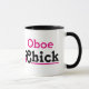 Oboe Chick. Vrouwelijke beker met de kleuren: roze paars en zwart. Voor een vrouw die van hobo spelen houd.