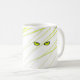 Une paire de yeux verts attentifs scrutant par le feuille.