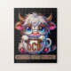 A funny and sarcastic colorful design showcases an adorable highland cow sitting with a steaming coffee mug labeled "O C D." The cow, with big blue eyes, glasses, and a concerned expression, sports brown and white fur. The vibrant text reads, "Obsessive Coffee Disorder." This quirky design is available on a wide range of products, making perfect gifts for coffee enthusiasts.