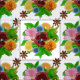 Nahtlos abstraktes Muster. Obstbouquet. Orange, Kiwi, Zitrone, Granatapfel, Minzblatt, Petunia, Rose, Sternanis, Mandeln, Minze, Zimt, Obst, Geschenk, Bouquet, Komposition, handgefertigt