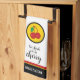 Wer Liebe keinen Küchenpun? Niedliche, illustrierte rote Kirschen in einem gelben Kreis/schwarze Kontur mit lustig/sonnig "Essen, trinken und Kirschen sein." darunter in einem schwarzen, Drehbuch-Schriftart. Ganz unten passen Sie sich die "Namensküche" an. Ändern Sie einfach die Farben, um Ihre Küche, wenn Sie möchten.
