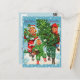 Cette carte de Noël vintage très brillante et colorée rappelle à un de leurs jeunes que nous voyons des enfants heureux et joyeux ramener le sapin de Noël à la maison après l'avoir coupé dans la forêt. Réimprimé ici sur cette carte postale de vacances.