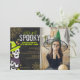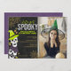 Fêtez l’anniversaire de votre petit ghoul avec cette éffrayante invitation photo Halloween ! Doté d’une amusante cheminée de crâne en casquette sorcier, de toiles d’araignée, d’illustrations de bonbons et d’accents verts néon, ce design ludique comprend de l’espace pour la photo de votre enfant. Un choix parfait pour les soirées costumées ou les anniversaires à thème Halloween — il suffit de personnaliser avec vos détails de fête et de télécharger votre photo préférée!