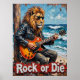 Dieses beeindruckende Gemälde vereint einen majestätischen Löwen mit einer Sonnenbrille und einer Lederjacke, der durch eine elektrische Gitarre das "Ozeanraub" ausstrahlt. Es lehnt sich an einen verwitterten Holzpfosten an einem Sandstrand, mit abstürzenden Wellen und einem strukturierten blauen Himmel im Hintergrund. Der Einsatz von kühnen, strukturierten Pinselstrichen betont die Rohenergie der Szene und die "Rock or Die"-Einstellung, die dieses unerwartete Konzert zum Leben erweckt.