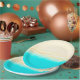 Das Meer, das aquamarine Wasser, der Sandstrand, die Teller aus Papier sind perfekt für eine Hochzeit am Strand oder eine Babydusche.