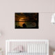 Featuring a breath taking view of a Enchanting Island Oasis With Majestic Ocean View.You can see the silhouette of some people around a fire and the ocean reflection of the beautiful orange sun.this on this is a beautiful photo on this poster