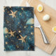 Une serviette de cuisine avec un élégant motif bleu avec étoiles de mer, représentant l'océan.