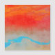 Ein abstraktes Design eines Ozeansonnenuntergangs mit kühnen Farben in Rot, Orange, Cyan, Blau und Beige.