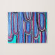 Ein Printdesign aus handgezeichneter und gemalter Kunst. Dieses blaue, lila und türkisfarbene, wellenförmige Muster ist ein grafisches Kunstdoodle, das durch die sanften Wellen des Ozeans, die an der Küste zapfen, inspiriert wurde. Perfekte coole Farben für Accessoires und für den Sommer.