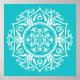 Dieses weiße Mandala liegt auf einem türkisfarbenen Hintergrund. Die Farben sind sehr beruhigend und friedlich. Teil der Rosenn Mandala Kollektion.