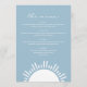 Ce menu est composé d'un soleil boho, d'une couleur bleu bébé et d'une combinaison de polices modernes. Ce menu est l'ajout parfait à votre mariage de plage, baby shower, douche nuptiale, ou tout autre événement. Modifiez le libellé *le plus* pour répondre à vos besoins. Toutes les couleurs sont modifiables.