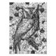 Handgezeichnete Tintenzeichnung einer Eule auf einem Eichenzweig.