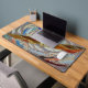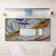 Diese einzigartige Schreibtischmatte ist mit einem fliegenden Eule- und Mondmosaik in kräftigen Farben dekoriert. Original Mosaik © Michele Davies.