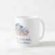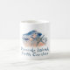 Ocracoke Island, NC ist einer der besten Orte in den USA für Muschelsammler und dieses Coffee Tasse Design ist eine Hommage an das, mit seiner Aquarellblau und rot Muschelkolage mit handgeschriebenem Schriftart.