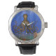 Uhr, Vintage Männeruhr mit schwarzem Lederarmband