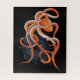 Ein orangefarbener Oktopus vor einem Hintergrund aus schwarz. Tentakeln der Kraken in und um Blasen und eine blaue Mandala