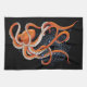Ein orangefarbener Oktopus vor einem Hintergrund aus schwarz. Tentakeln der Kraken in und um Blasen und eine blaue Mandala
