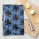 Schwarzes Oktopusmuster Küchentuch mit Platz für einen Single, monogramm initial. Dunkelblau mit schwarzem Oktopus-Design. Wenn es zu Hand geklappt wird, wird ein Single, ein weißer Initial angezeigt.