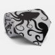 Octopus-Muster. Verstrickt und verstrickt. Dieses Bild ist ein nahtloses Muster mit schwarzen Silhouetten verschiedener Meereslebewesen auf weißem Hintergrund. Das Hauptmotiv ist der Oktopus, der in verschiedenen Größen und Positionen dargestellt ist. Manche Oktopoden werden aufgerollt, während andere ausgestreckt sind und sich ihre Tentakel nach außen ausbreiten. Das Muster umfasst auch Seesterne, die das Unterwasserthema ergänzen. Das Schwarz-Weiß-Farbschema sorgt für eine einfache, aber auffallende visuelle Wirkung, während das sich wiederholende Muster Bewegung und endloses Unterwasserleben suggeriert.