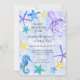 Octopus Seepferd Starfish Beach Blue Baby Shower Einladung wurde aus Acryl Aquarellkunstwerken erstellt, die von Audrey Jeanne Roberts, einem international anerkannten Künstler und Produktdesigner, gemalt wurden. Spaß, skurrile und farbenfrohe Meereslebewesen in lila, Lavendel, blau, aqua blau, grün und gelb tanzen um den Einladungstext. Auf der Rückseite befindet sich ein Bereich, in dem Sie die Nachricht für eine Überraschungsdusche, Informationen über die Dekoration des Kinderzimmers oder wie in "Bücher für Baby" gezeigt, anpassen können. Urheberrecht.