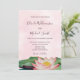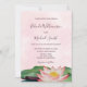 Diese elegante Blumen-Hochzeitseinladung zeigt ein Aquarellbild einer Lotus-Blume auf einem rosa Aquarellhintergrund. Auf der Rückseite ist ein scannbarer qr Code für Ihre Hochzeitswebsite.