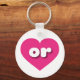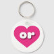 Dieser Schlüsselanhänger ist ein lebendiges, heiß rosa Herz, das die fett-, weiß-, abgerundeten Kleinbuchstaben enthält, oder eine spielerische Abkürzung für Oregon, den Biber-Staat.