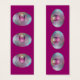 Un décor bleu pastel, lavande et rose avec un oeuf rose translucide dans un cadre argenté, entouré d'un cadre ovale argenté clair et composé de quatre pierres précieuses plus lisses comme des oeufs colorés.