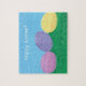Ces énigmes présentent ma peinture de trois oeufs de Pâques pondus dans l'herbe. Les oeufs sont mélangés ; il y en a un rose, lavande et jaune. Le ciel est bleu pâle et le texte, Happy Easter, est écrit en blanc à travers le ciel. Le texte peut être facilement customisé sur le formulaire modèle. Merci pour faire du shopping CherylsArt sur Zazzle.